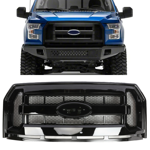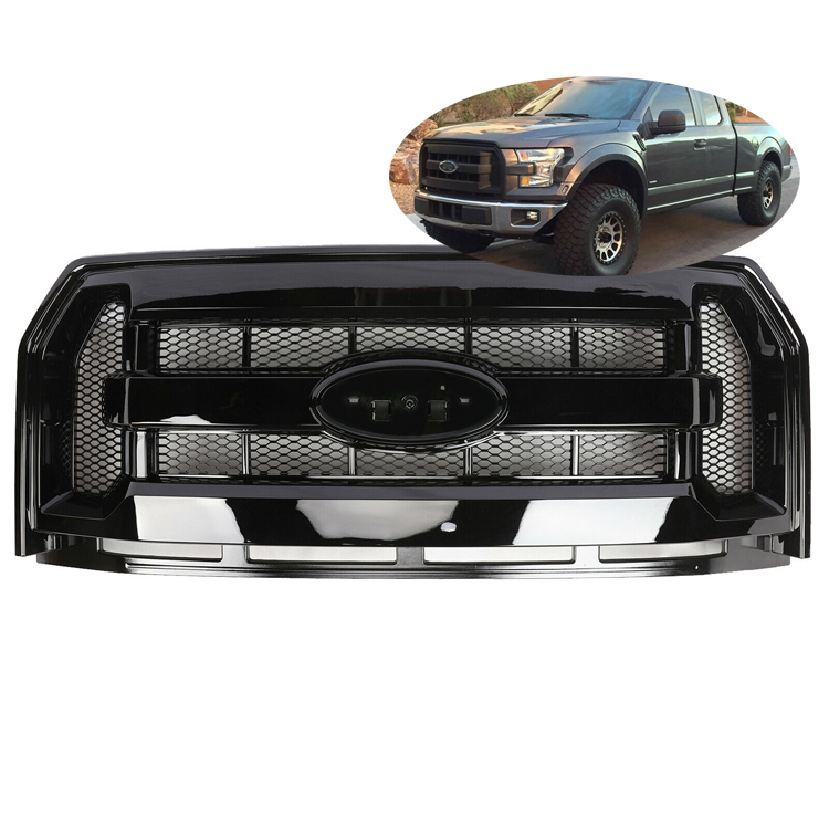 2015-2017 Gloss Black Front Hood Bumper Upper Mesh Grille for F150 Grill with Led Offroad